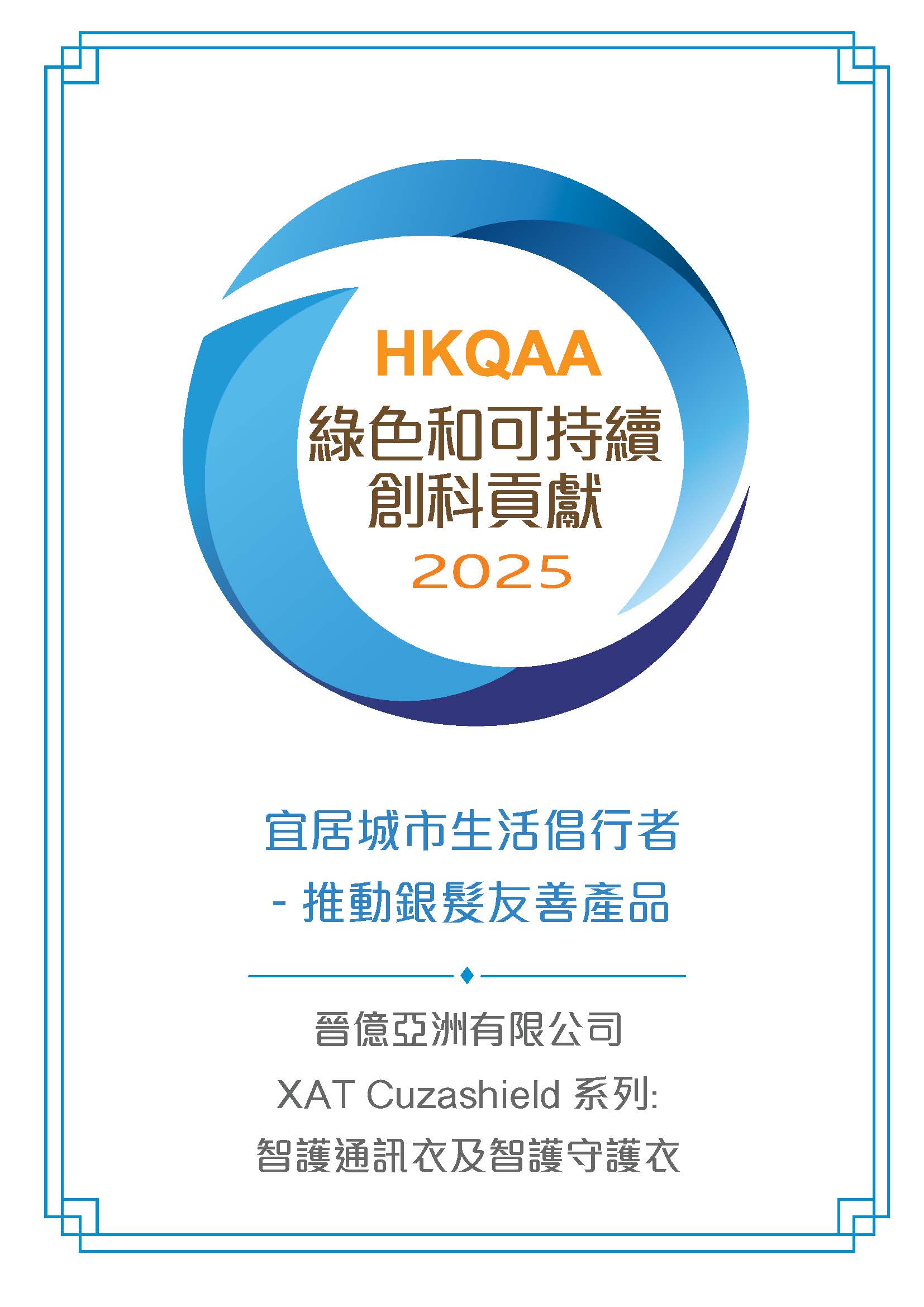 XAT Cuzashield® 系列 — 智能通訊衣及智能健康內衣此獎項表彰 GMC Asia 透過 銀髮友善創新科技,為宜居城市發展所作出的貢獻。