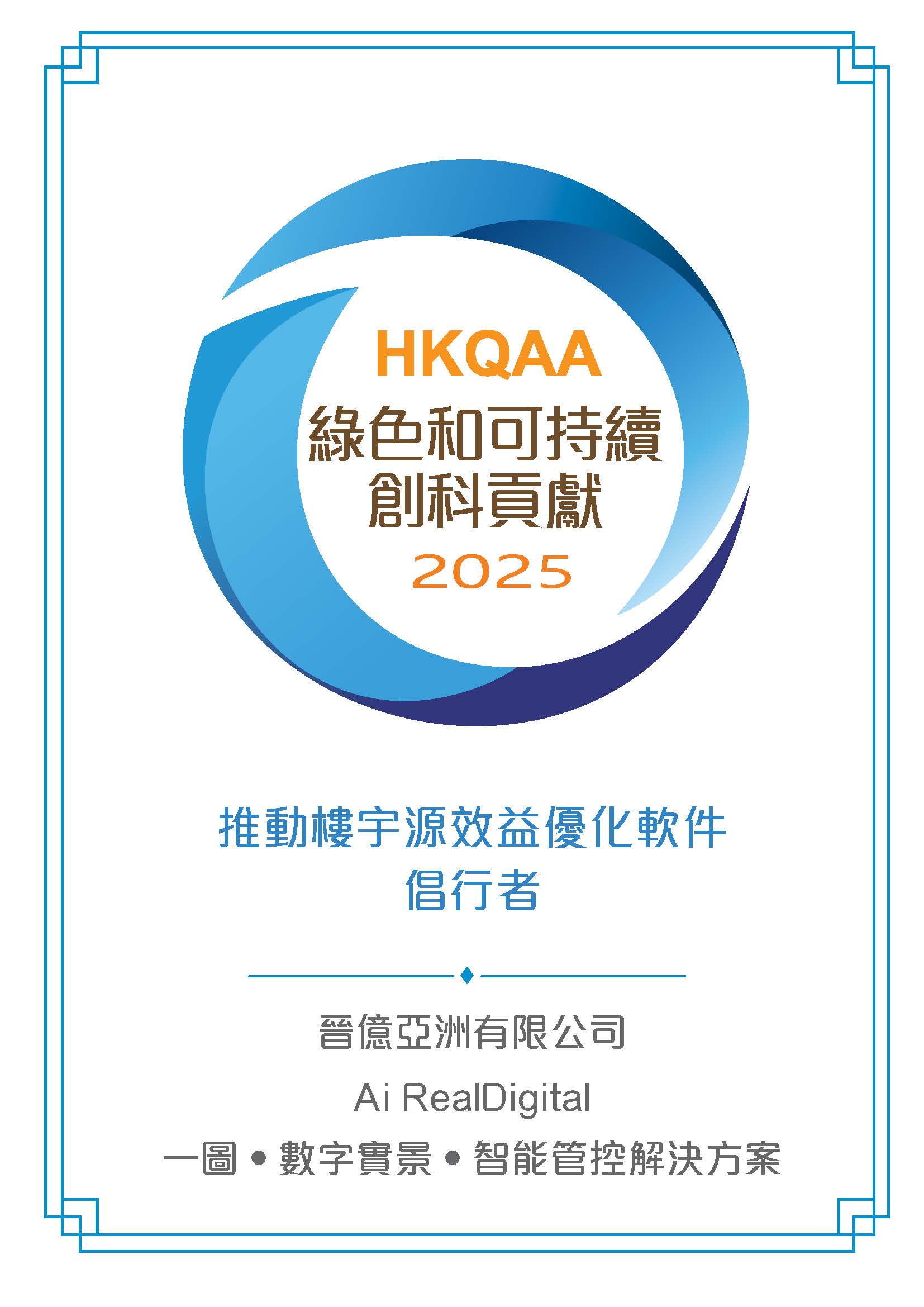 Ai RealDigital - 一圖式全控數字孿生解決方案此獎項進一步表揚 晉億亞洲 在樓宇層面能源管理與效益優化 的貢獻。